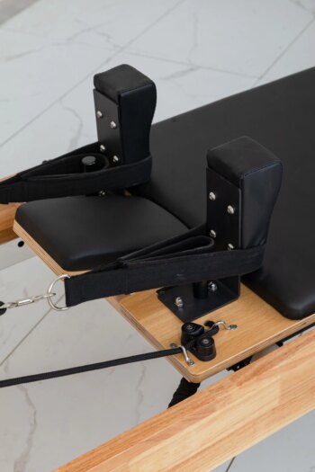 Professional-grade adjustable wooden Pilates reformer, 3-in-1 multifunctional design for studio use. High-quality construction ensures durability, ideal for comprehensive Pilates workouts.