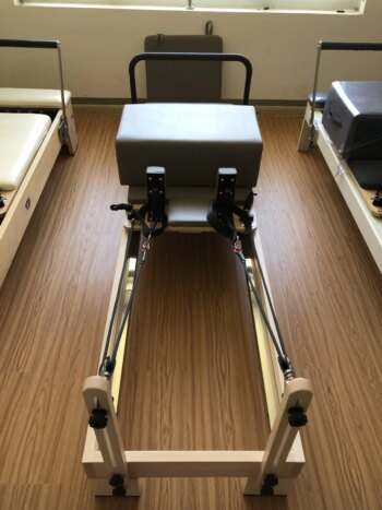Professional-grade wooden Pilates reformer designed for studio and individual use, featuring classic construction for authentic Pilates workouts. Crafted with high-quality wood for durability and stability, ideal for both beginners and advanced practitioners.